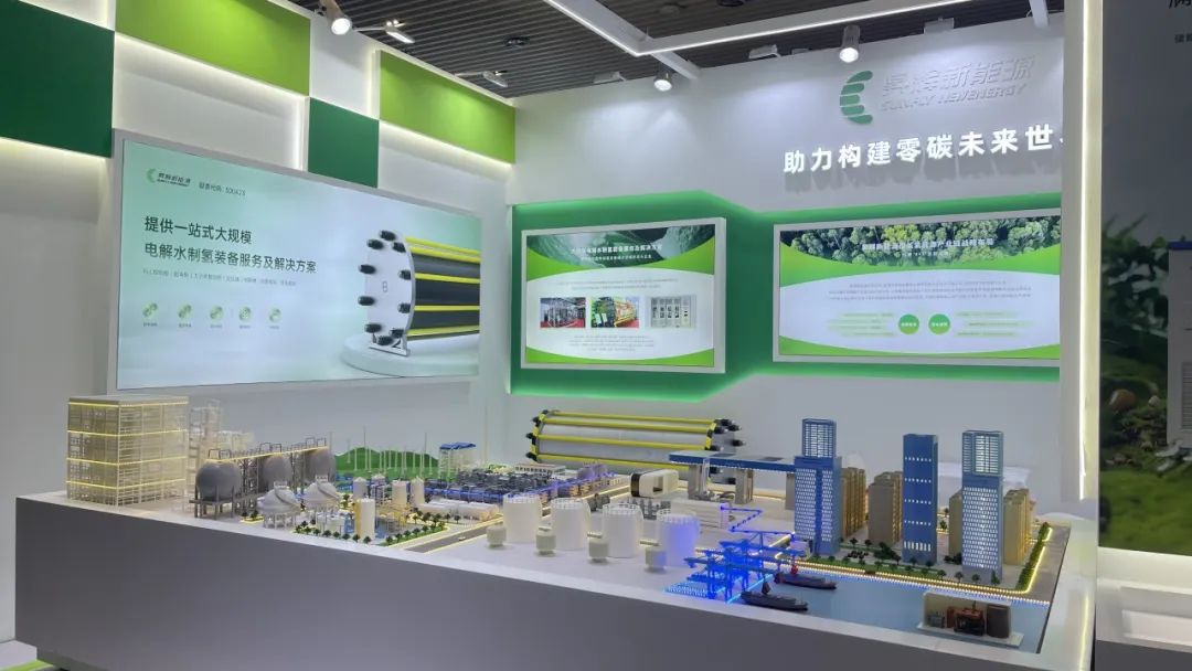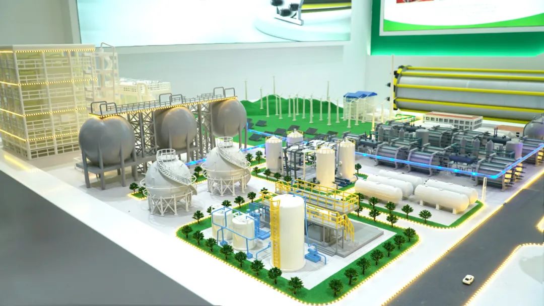 昇輝新能源展臺(tái)區(qū)域設(shè)置有“氫能全產(chǎn)業(yè)鏈布局沙盤”,沙盤還原了昇輝新能源針對(duì)中國(guó)能源體系在雙碳目標(biāo)下的轉(zhuǎn)型所需,以中國(guó)沿海城市群及三北地區(qū)為范本,呈現(xiàn)如何應(yīng)用風(fēng)光發(fā)電、綠電制綠氫,制造-儲(chǔ)運(yùn)-加注-用氫一體化等解決方案,將氫氣規(guī)模化用于交通、社區(qū)等應(yīng)用場(chǎng)景,為國(guó)家能源轉(zhuǎn)型升級(jí)和綠色城市發(fā)展提供氫能全產(chǎn)業(yè)鏈解決方案。