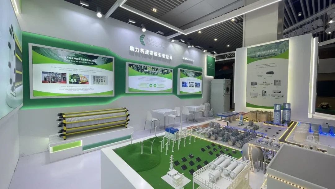 電解槽是氫能制造板塊核心產(chǎn)品,此次我們展出了等比縮小的電解槽模型,讓觀眾可以近距離感受昇輝的產(chǎn)研力量。昇輝新能源能夠自主研發(fā)生產(chǎn)5Nm³/h~1000Nm³/h的電解水制氫成套設(shè)備,以及模塊化可擴(kuò)展式的100MW點(diǎn)解系統(tǒng)平臺(tái),并同步開發(fā)PEM制氫設(shè)備,打通電解水制氫裝備全套制造環(huán)節(jié),提供一站式服務(wù),目前已具備年產(chǎn)20臺(tái)套1000Nm³/h制氫設(shè)備的產(chǎn)能。