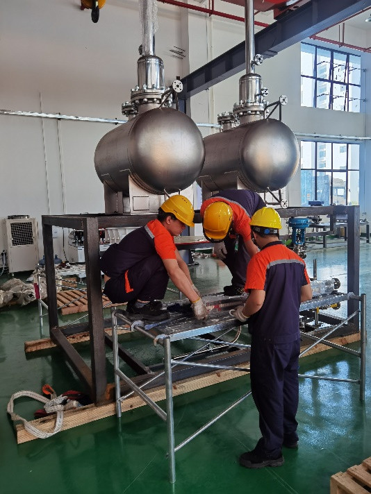 盛氫公司成立后的第一個任務(wù),就是快速向市場推出首臺套堿水制氫設(shè)備、亮出盛氫制氫“名片”,研發(fā)周期也不過只有三個月時間。團隊克服時間短、任務(wù)重的困難,科學合理統(tǒng)籌安排,公司上下一心,加班加點全力投入生產(chǎn),做好周末全程加班保進度。管理層下沉一線,同時做好對研發(fā)過程中的精細化管控,車間工藝全程數(shù)字化溯源管理,實現(xiàn)全過程品質(zhì)保障。對影響產(chǎn)品準時下線的“卡脖子”環(huán)節(jié)都能做到精準排雷,特別是疫情對于供應(yīng)鏈的影響,派駐采購駐廠跟蹤供應(yīng)進度和品質(zhì),多措并舉打通研發(fā)鏈條的堵點卡點。