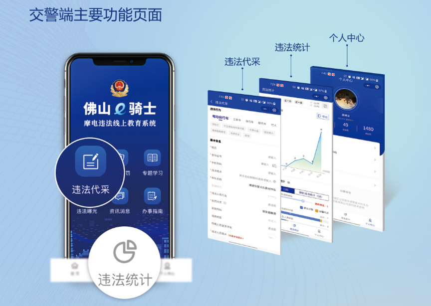 打開手機(jī),點(diǎn)開“佛山e騎士”小程序,借助后臺(tái)的數(shù)據(jù)管理系統(tǒng),可以高效實(shí)現(xiàn)違法追責(zé)的準(zhǔn)確落實(shí)、違法教育的閉環(huán)管理,同時(shí),違法采集、線上教育等環(huán)節(jié)的操作簡便、用時(shí)縮短、效果明顯,在摩電整治的過程中,為基層民警增效減負(fù)。