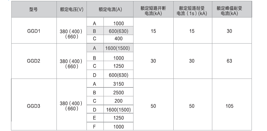 GGD 具有分?jǐn)嗄芰Ω?、?dòng)熱穩(wěn)定性好,額定短時(shí)耐受電流達(dá) 50kA。電器方案靈活、組合方便、實(shí)用性強(qiáng)、結(jié)構(gòu)新穎、防護(hù)等級(jí)高等特點(diǎn)。